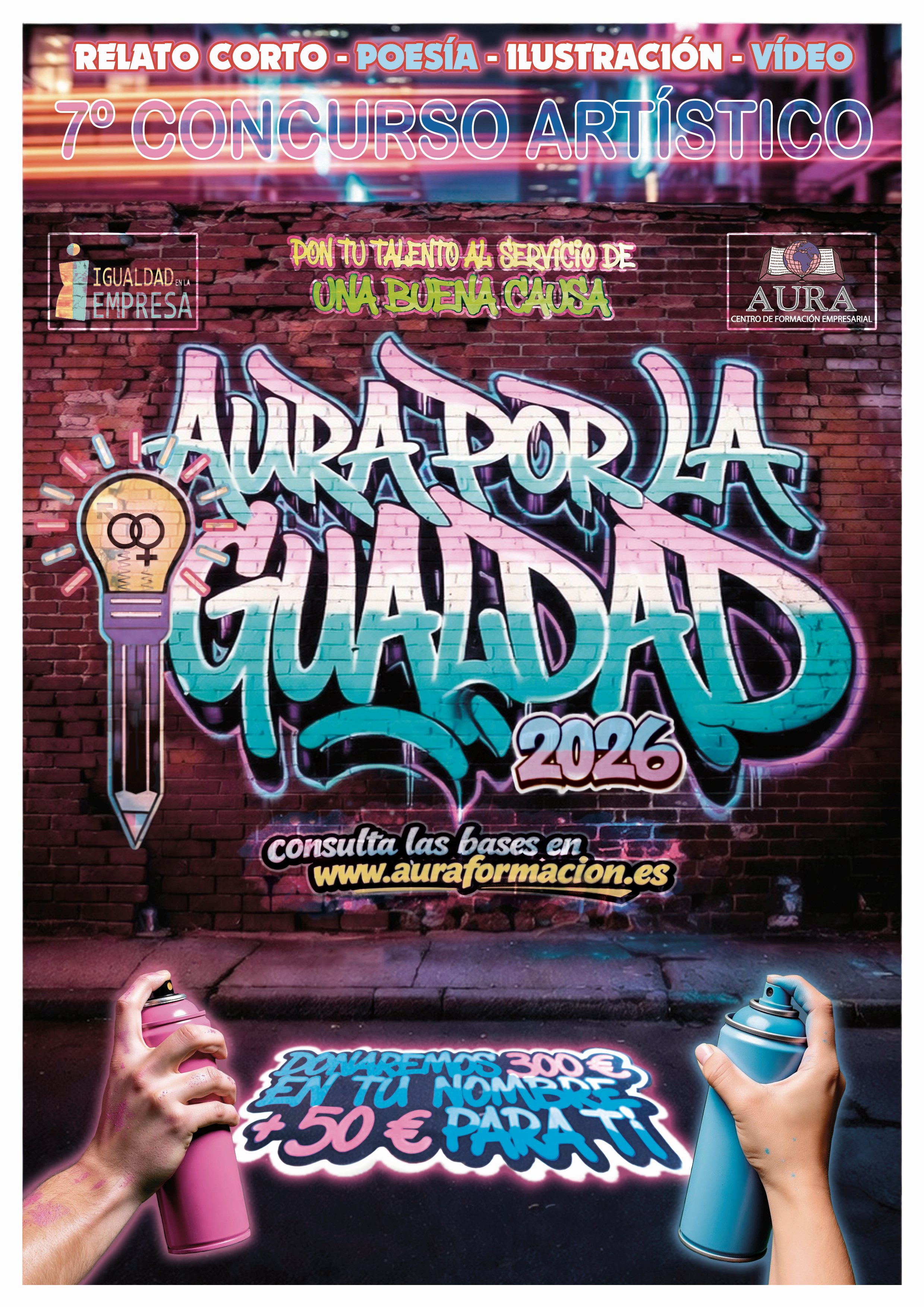 Con la finalidad de promocionar la igualdad de oportunidades entre mujeres y hombres (indistintamente de su orientación sexual o su identidad de género) y para sensibilizar a la ciudadanía en general y, en particular, al alumnado de sus sedes de formación en Gran Canaria y Tenerife, el Centro de Formación Empresarial AURA, SL ha creado el concurso artístico «AURA POR LA IGUALDAD».